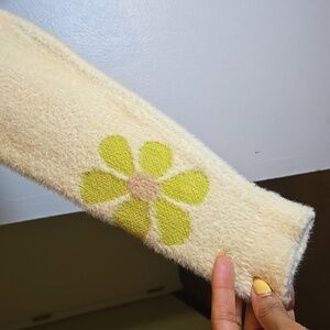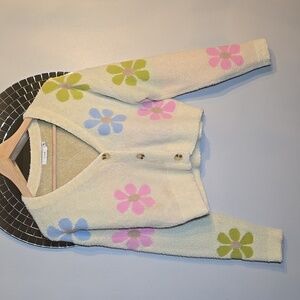 Lush Cropped Viscose Fuzzy Button Front Colorful Daisy Cardigan NWOT