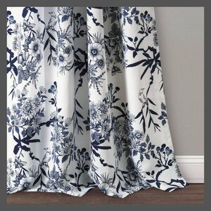 Lush Decor - 2pk 52"x84" Light Filtering Botanical Garden Curta Navy