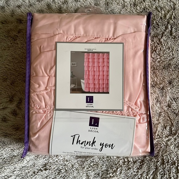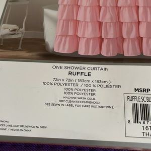 New! Ruffle Shower Curtain. Shower Curtain: 72"H x 72"W. Fabric Content: 100% Polyester. No Lining