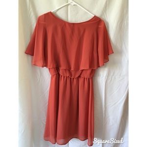 Orange sleeveless dress with sheer shoulder cover. Very flowy