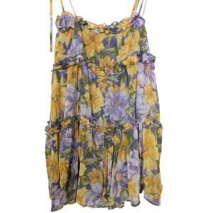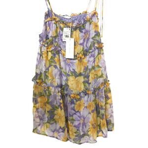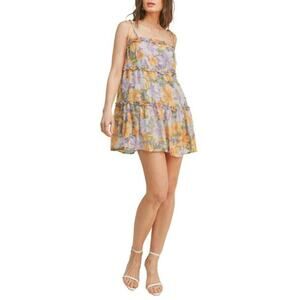Lush Dress Floral Tie Shoulder Ruffle Minidress In Lilac Mango Floral NWT Small