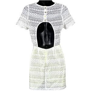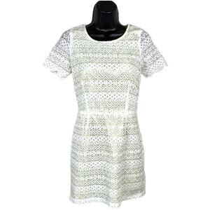 Lush Dress Lace Short Sleeve Open Back Sheath Mini White Yellow Women's Small S