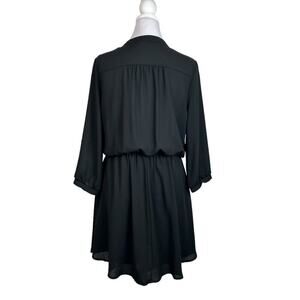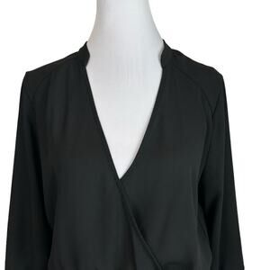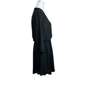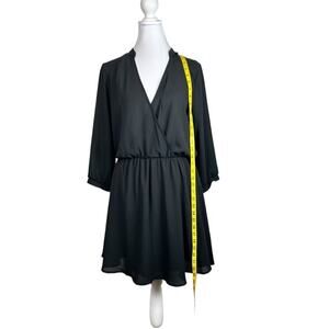 Lush Emma Surplice Skater Dress Womens Size M Black Chiffon Lined Skirt Chic