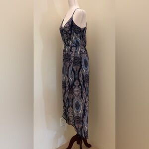 Lush. Faux Wrap High Low Maxi Dress. Blue and Pink Pattern. Small