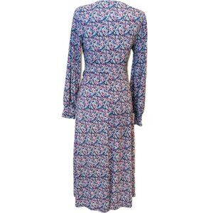 Lush | Floral Moss Crepe Long Sleeve Wrap Dress Blue Purple Multi | Size Medium