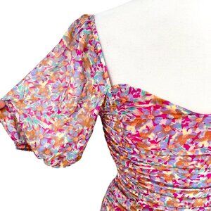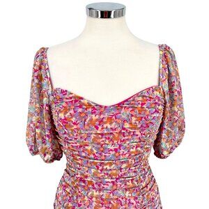 Lush Floral Multicolor Ruched Puff Sleeve Sweetheart Mini Dress Size Small
