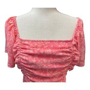 Lush Floral Ruched Front Blouse~Size Medium~Pink Smocked Back Top NWOT L13 16