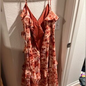 NWT floral high low lush dress. Never worn. Slight fraying at straps otherwise excellent condition
