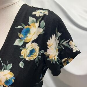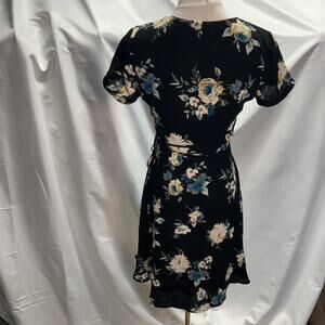 Lush Floral Wrap Dress Womens XS New Black Blue Boho Feminine Wedding