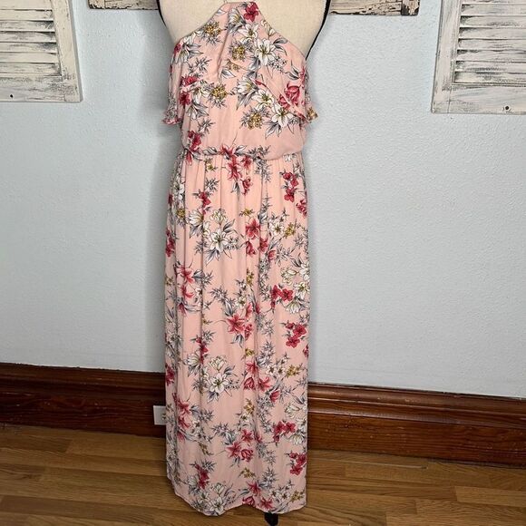 Lush Floral Maxi Sleeveless Halter Keyhole Back Pink Women's Dress Size Medium