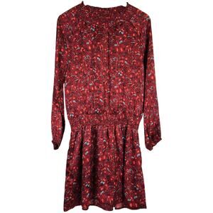 Lush Flowy Floral Smocked Long Sleeve Dress in Wine L