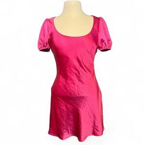 Lush Fuschia Satin Puff Sleeve Mini Dress Y2K Style Barbie Pink Size Medium