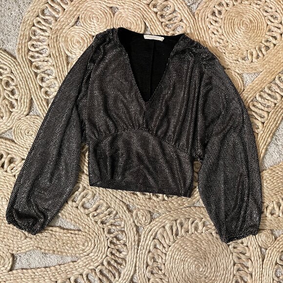 Lush Gold Metallic Balloon Sleeve Top Size S