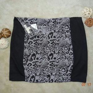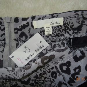 This item is brand new. Lush gray black leopard skirt in woman's size medium. It has a back zipper closure. Very cute skirt.