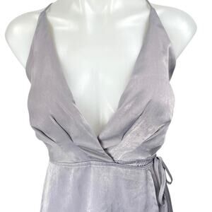 Lush Gray Satin Faux Wrap Sleeveless V-neck Cami Camisole Midi A-Line Dress Sz M