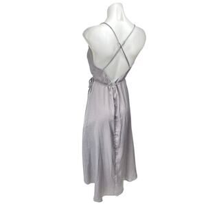 Lush Gray Satin Faux Wrap Sleeveless V-neck Cami Camisole Midi A-Line Dress Size M