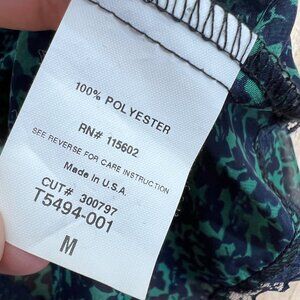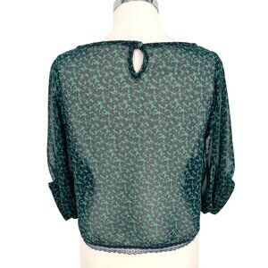 Lush Green Navy Sheer Lace Accent Blouse Half Sleeve Size Medium