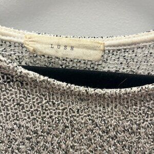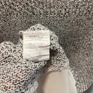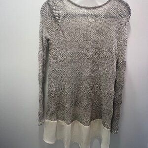 Knit Grey/white sweater, attached contrast fabric trim at base.