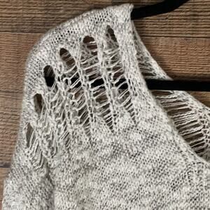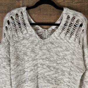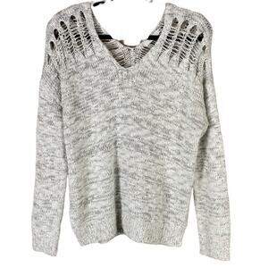 Lush Heather Gray Destroyed Distressed V-Neck Sweater Size Small