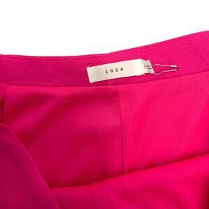 Lush Hot Pink Side Zip Eyelet High Waist Shorts Size Large; side zip closure; cutout/embroidery at hemline. 100% polyester.