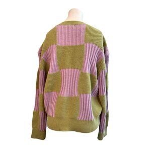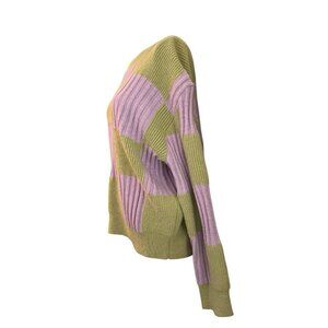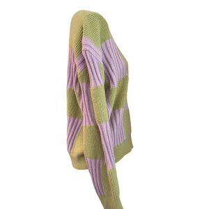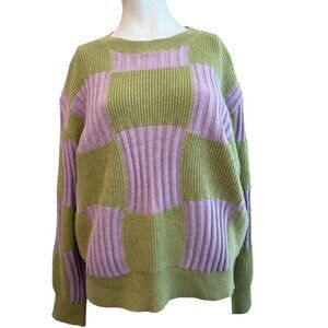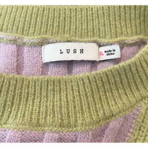 Lush Ladies XL Soft Knit Colorblock Lilac Purple Green Crew Neck Sweater