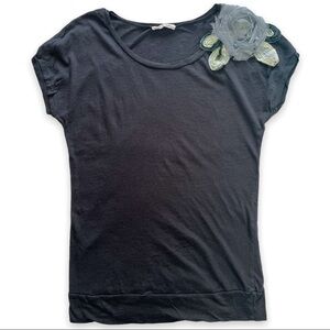 Lush Lightweight Mixed Material Applique Flower Top sz S