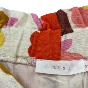 Lush Linen Blend Lined Pull On Retro Floral Print Shorts Womens Small