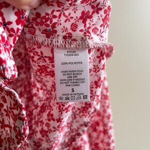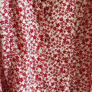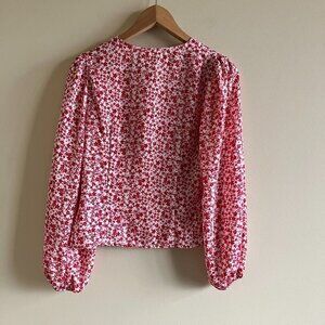 Features: Lush Long Sleeve V Neck Button Front Blouse with red flowers