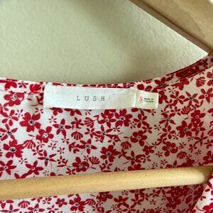 Lush Long Sleeve V Neck Button Front Blouse Top Womens Size S Semi Sheer…