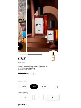 Lust is a heady mash-up of rich florals and a warm, woody base that lasts on the skin for hours and hours. It's multi-layers made up of jasmine, ylang ylang, rose, vanilla and sandalwood making it (and you, by association) unabashedly sexy. Resistance is futile.