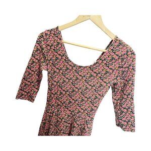 Lush M Pink Floral Fit & Flare Dress 3/4 Sleeves Open Back Stretch Fitted
