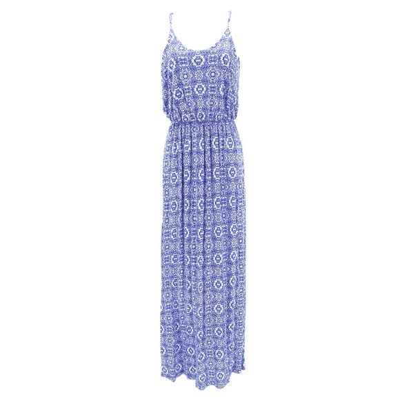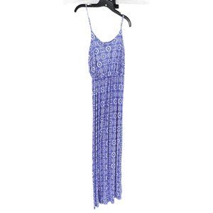 Lush Mediterranean Spaghetti Strap Maxi Blue White Pattern Soft Sun Dress S