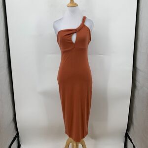 Lush Midi Dress Womens S Spice One Shoulder Twisted Knot Asymmetric Keyhole Neck