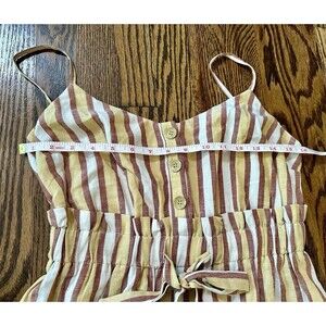 Lush Mini Dress Women's Small Tie Button Sleeveless Striped Yellow Multi Boho