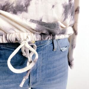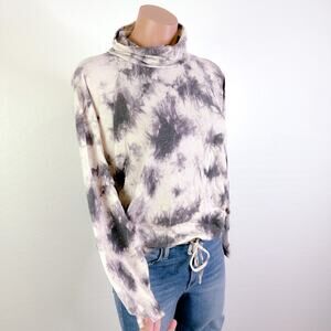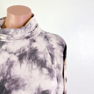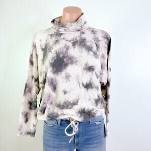 Lush Mock Neck Long Raglan Sleeve Top Sweatshirt Gray Stone Tie Dye Small NEW