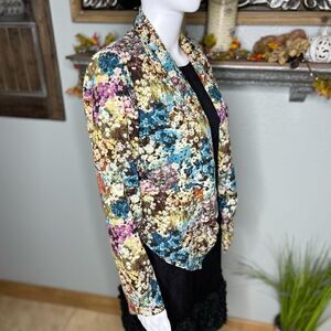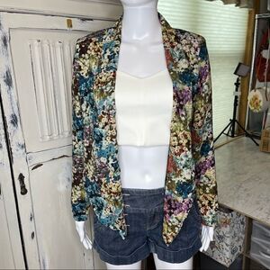 Lush Floral Scallop Hemline Waterfall Neckline Jacket Size Small Multi colored floral