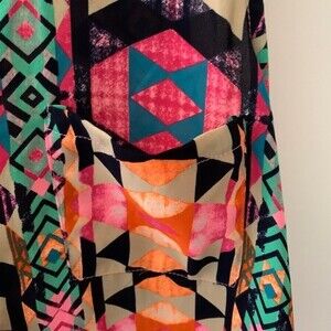 Lush Multicolored Geometric Print Sleeveless 1/2 Button Front Tunic Blouse Sz S