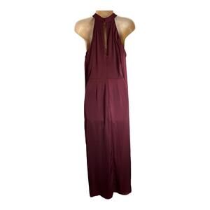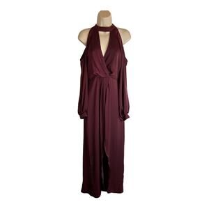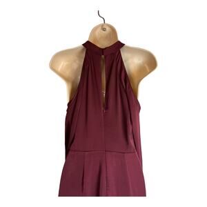 Lush NWOT Burgundy Satin Jumpsuit Cold Shoulder S Small Shorts Overskirt