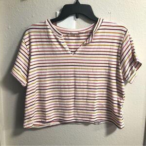 Lush NWOT Stripe Notched Crop Tee - Large