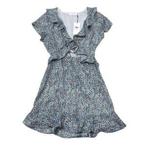 Lush NWT Dress Wrap Blue Tie Back with Ruffles Floral Size Small S