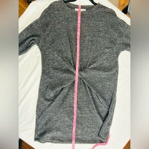 Lush NWT Twist Front Wrap Waist Long Sleeve Charcoal Sweater Midi Comfy Cozy Very Soft Dress Sz L