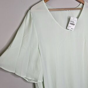 Lush Nordstrom Sheer Flutter Short Sleeve Top in Green Mumble Size 3X NWT!