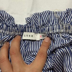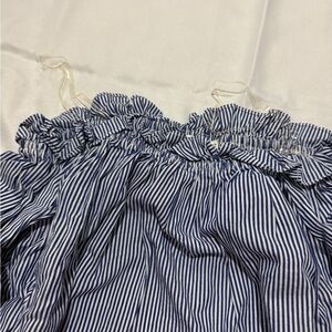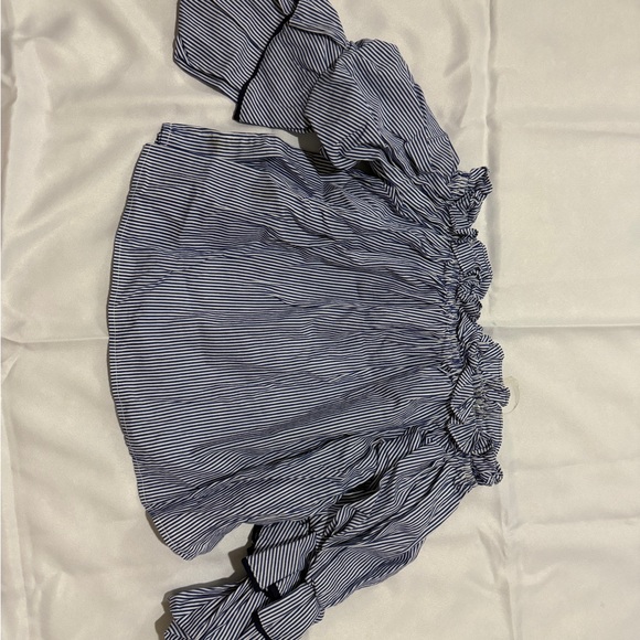 Off shoulder ruffles top - in stripe blue+white