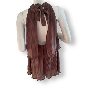 Lush One Piece Mocha Romper Pleated Sleeveless Brown Size M