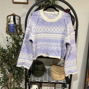 Stylish knit with geometric patterns. Soft pastel tones. Perfect for layering.