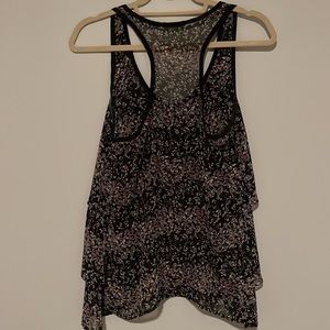 Floral Pattern Thick Strap Tank with Layered Subtle Ruffles