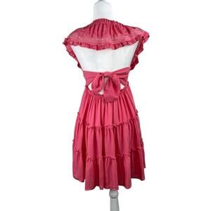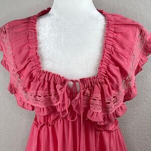 Lush Pink Blossom Lace Tie Back Square Neck Tiered Sleeveless Mini Dress Size Large NWT