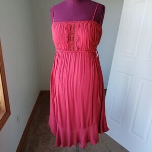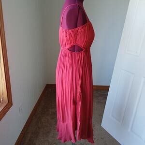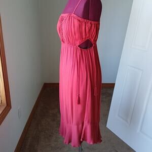 Lush Pink Sundress Small boho midi side cutouts adjustable straps ruffled hi-lo