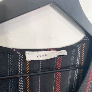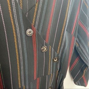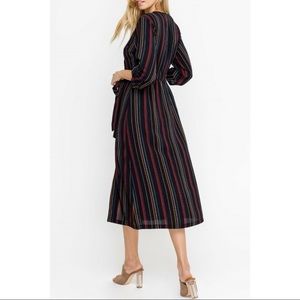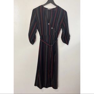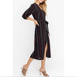 Lush Pinstriped Waist Belt Button Down Front Slit Midi Dress
