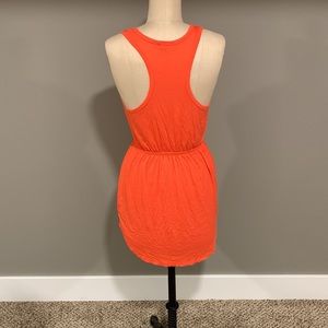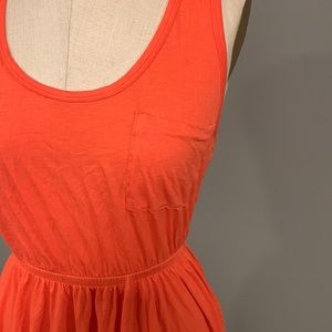 Coral racerback mini dress. Front pocket, elastic waistband. Stretchy and soft.